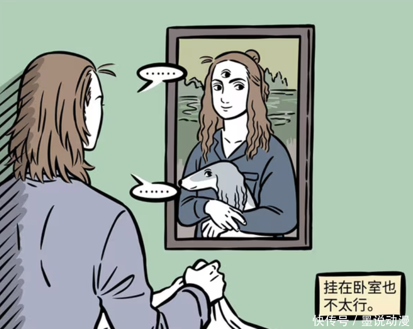 看到画之后,杨戬所有东谈主一刹愣住。这是某个画家,以《蒙娜丽莎》为原型,编削了主题,加上了天眼,外加哮天的神犬花式。从这一幅画来看,艺术要素是挺高。不外仔细一看,就能看出哮天对杨戬满满的爱。