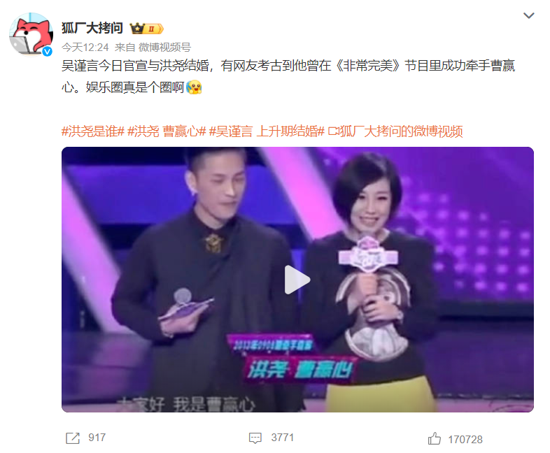 “吴谨言洪尧成亲”话题登上热搜后,陡然“爆”了,领先看到,吴谨言和洪尧发出音信,网友们齐以为他们在官宣新剧,恶果水汪汪地领证了,随后“洪尧是谁”话题也登上热搜。