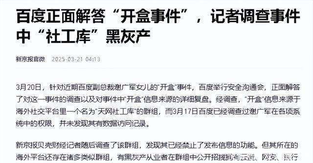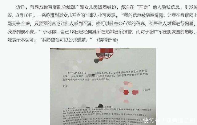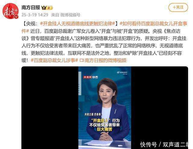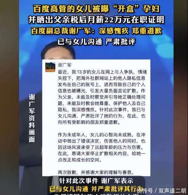 央视《焦点访谈》专诚针对“开盒挂东说念主”这一气候进行了报说念,指出这是拿东说念主诡秘当刀兵,严重伤害他东说念主。谢女开盒妊妇的这件事情,把这个灭绝在网罗背后的昏暗边缘败露在了各人眼前。这不单是是她个东说念主的说念德缺失问题,更反馈出悉数这个词社会在网罗监管和家庭锤真金不怕火方面的过错。百度看成一家大公司,旗下高管的家属作念出这样的事情,无疑给公司的形象抹了黑。这也让东说念主们对网罗诡秘的保护愈加关注,毕竟在这个网罗时期,谁也不知说念我方的诡秘什么时期就会被泄露。