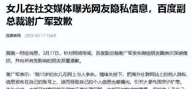 再看她父亲的说念歉。他在一又友圈发了说念歉声明,本色却空论连篇。只是说我方男儿还小,吵架的时期没管住我方,还把我方的一些信息也漏了。他把要点放在了男儿小、心绪失控上,好像我方才是受害者的嗅觉。这哪是一个及格的说念歉啊,几乎即是在疏漏偷安。并且他看成百度的高管,这样的事情只是在一又友圈处理,显然莫得选藏起来。这也让大众对他场所的公司百度的措置产生了怀疑。百度随后也发了声明,想要抛清干系,可网友并不买账。在我看来,这不单是是一个孩子的伪善,家庭的溺爱以及公司措置的断然都有不可推卸的牵累。