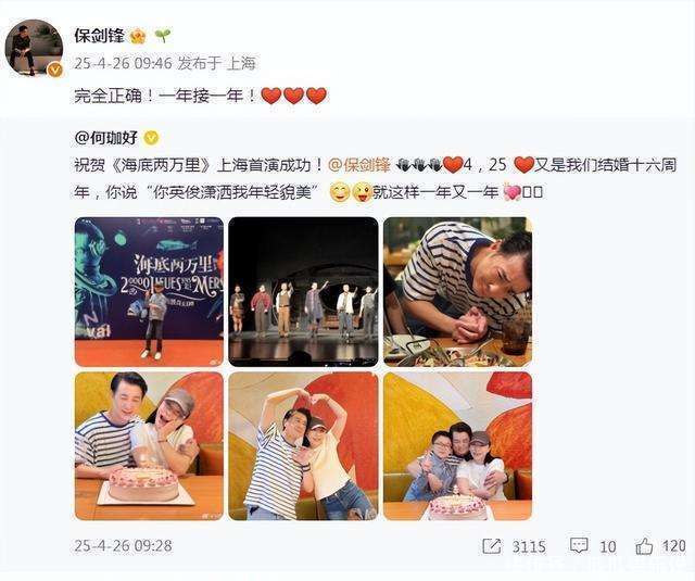 在文娱圈这片高贵喧嚣的世界里,明星们的厚谊糊口向来是大众关心的焦点。而 4 月 26 日,一则温馨的音讯如同春风拂面,在收罗世界中悄然传开。演员保剑锋的爱妻何珈好,在个东谈主外交平台共享了一组极具挂念意思的相片,庆祝他们受室 16 周年挂念日。更令东谈主惊喜的是,这一次一家三口皆皆出镜,共同为这个罕见的日子增添了一抹和煦而狂放的色调。