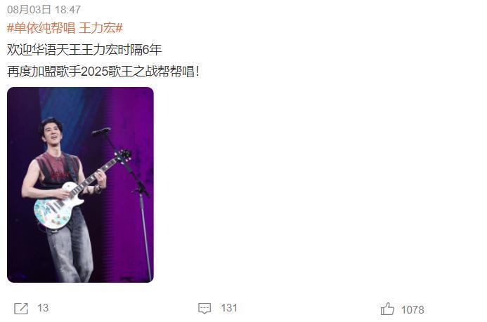 第12期节目刚放胆,网上就传出王力宏要来帮唱的音尘,那时大家并不知说念王力宏会帮唱哪位歌手,字据知情东说念主士泄露,王力宏将帮唱单依纯,随后“单依纯帮唱 王力宏”话题登上热搜。